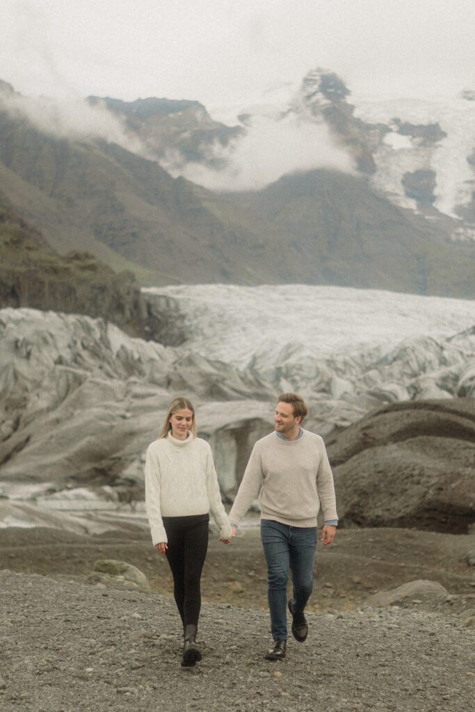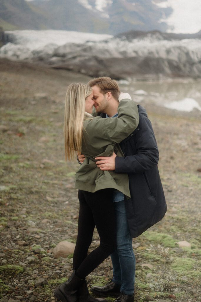 This engagement session in Iceland hits different. We stand right up close to Vatnajökull National Park, watching blue ice crack and shimmer while ancient mountains loom like they’re fully aware they’re the moment. It’s hiker’s paradise! The glacier there is the largest in Europe so we’re definitely scoping it out! The Iceland air feels crisp, the landscape feels unreal, and somehow it all still feels intimate. Iceland does that.