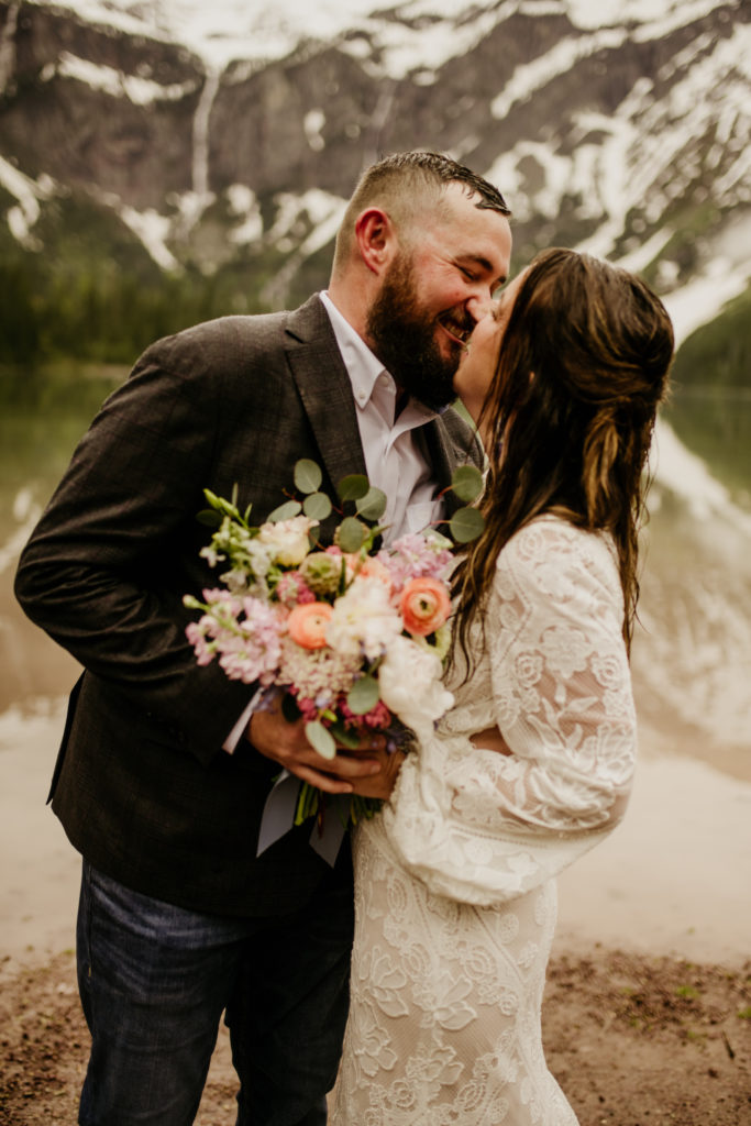While Maggie and James enjoyed a more true spring vibe elopement at Glacier National Park, another one of our couples, Krista and Peyton, had some snow during their Glacier National Park Spring Elopement. Spring can look different each year so scout out what you want for your special day!