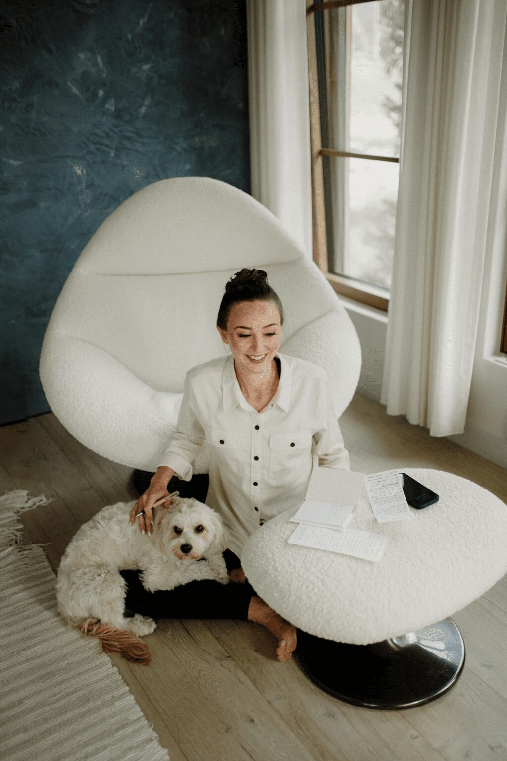 I call it a Rise Ritual. This is where I wake up, get kisses from my dogs, make some morning tea, write down 10 ideas for my day, and journal morning pages. The morning pages are 3 pages of longhand, stream of consciousness writing. If you haven’t read The Artist’s Way by Julia Cameron, it is pretty intense but has a lot of great ideas for creatives. What I’m not doing? Checking my phone. No emails are opened, I have no idea who’s sliding into my DMs. There will be time for that later in the day. Right now, it’s about that morning bliss.