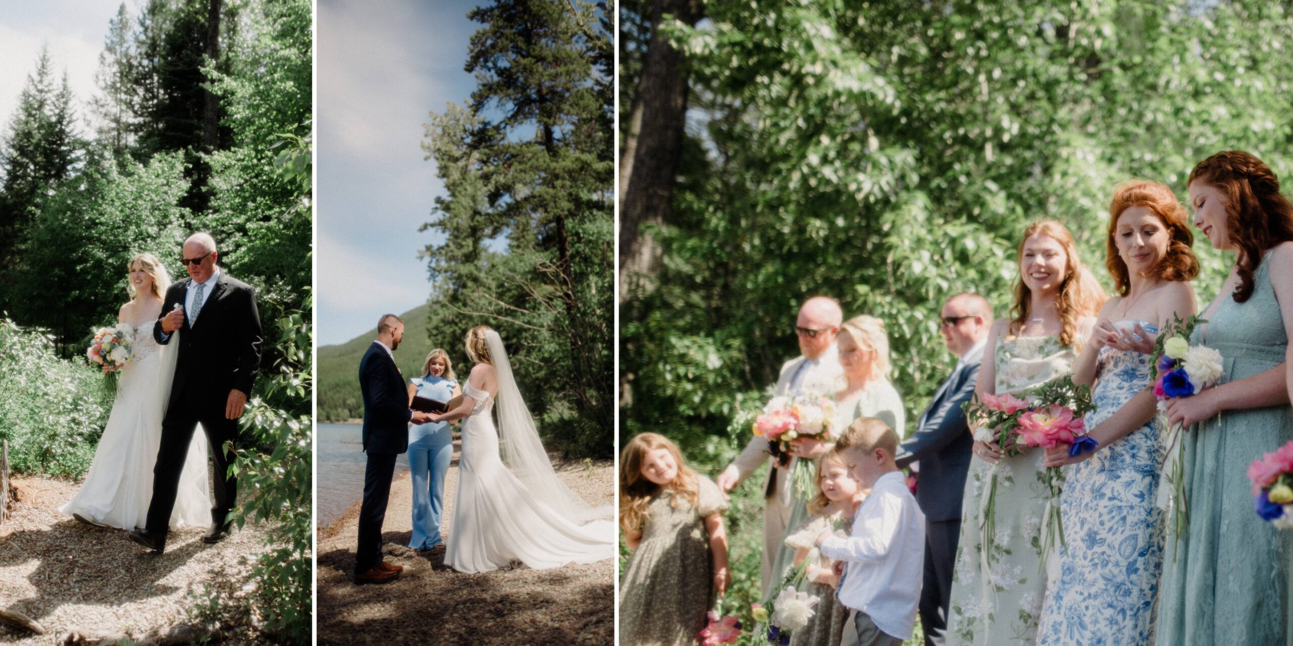 For example, Jazzy and Ben have really close friend relationships, so they bring them all the way to Montana for their wedding day. The ceremony is so meaningful, everybody’s all dressed up and supporting them as they share their vows with each other. Ben hasn’t seen Jazzy all day until the moment she’s walking down the shore, flowers in her hair, towards him. Deep in their souls, you can just tell that they are best friends. We all got teary eyed as they exchange vows.